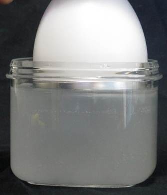 キャビテーションは、乳化をしないと意味がありません。簡単な確認方法として、水と油での乳化実験がその一つです。通常水と油は、粒子の大きさが異なるので、決して混ざり合う事はありません。容器に水をはり、油を少量入れたら、水面に「Cavi-Lipo DEX」のヘッドをあてます。キャビテーションシステムによって、即座に油と水が混じり合っていきます。これを乳化といいます。2分ほどで容器の中の水は真っ白に濁ります。
